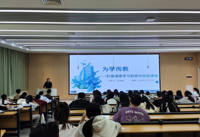 宋东映老师以“为学而教——打造深度学习的高中历史课堂”为主题,通过“深度教学”的视角,列举了七个不同类型的教学案例。她围绕“历史学科教学”和“历史学科教学研究”两个方面展开论述,强调教学应以员工为中心,灵活运用各种教学方法,充分调动员工的学习主动性,激发其学习内驱力。她还指出,应融合历史学习、员工认知及身心发展规律来精心设计教学过程,使员工真正做到“亲其师,信其道”。
