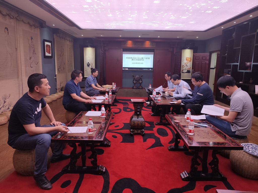 (历史系供稿)5月10日下午4点,历史系在兰台书院召开本学期第三次教研会。本次会议的主要内容有两个:一是修订中国史、学科教学(历史)硕士研究生人才培养方案,二是围绕学院近期工作安排,进一步加强师德师风教育。参加本次教研会的同志有:陈力、李义芳、余劲东、周中梁、卢川、赵标、余静贵、向会斌。教研会由系主任卢川主持。