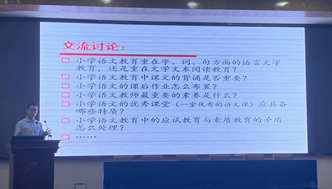王昌凤博士用广博的学识、新颖的思考和的精妙的语言为学员带来了耳目一新的《儿童美育》课。从当前儿童美育的特殊性的分析到当下小学教育中儿童美育的具体实施方案,王老师智慧的谈吐和精道的见解深深吸引着学员们,“她对美的独特理解,颠覆了我们对传统的文学价值观,引人深思。”学员郭颖如是说。吴新平博士的《儿童文学与语文教学》生动有趣,吴博士介绍了儿童文学作品的教学方法,强调“读”在小学语文课堂的重要性,指出教师要引导员工通过朗读的言语实践,帮助儿童品味并实践儿童文学的情感美和形式美,领域文学意蕴美,他呼吁小学老师要阅读儿童心理的相关书籍,了解儿童的心理发展过程,用热爱去灌浇儿童的心灵之花。