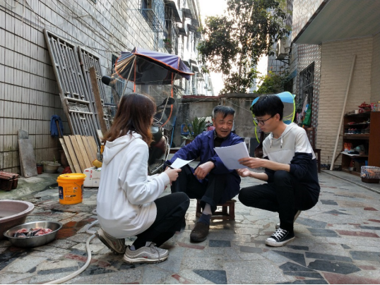 6日上午,小组成员带着极大热情一起乘车前往下乡——濯港镇,为下乡词汇的收集进行准备。在经过一个半小时的车程后小组成员顺利到达濯港镇李珑村,在村中找到了倪新兵夫妇进行访问。由于有了5日的采访经历,小组成员分工更加详细,访问的过程也更加的顺利,在不足两个小时的时间内完成了访问工作。在访问的末尾,倪新兵叔叔对小组成员说到,“很少有人会注意到对黄梅的方言进行研究,也忽视了它的重要性,你们的工作不仅仅是一项任务,更是一份成就。”