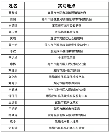 习近平总书记一再教诲青年人:“要不怕困难、攻坚克难,勇于到条件艰苦的基层、国家建设的一线,经受锻炼,增长才干。”2018年暑期,文学院2017级历史系的19位同学,分赴湖北省宜昌、襄阳、孝感、随州、黄冈、荆州、恩施土家族自治区及江西省萍乡市各级政府部门参加暑期实习实训活动。在实习过程中,同学们吃在基层、住在基层,切身体验了基层建设的新成就;向各级领导和同事学习,了解了政府部门的工作环境,熟悉了相关的工作技能,为日后的成长提供了助力;同时,在基层实习期间,同学们积极帮助市县乡各级政府部门建言献策、并亲身参与了暑期的防汛抗旱工作,得到了服务单位的一致好评。此外,还有一名同学在暑假期间,积极报名参军,现已成为一名光荣的解放军战士。以上种种,已经充分证明2017级历史系是一个善于学习,勇于奉献的优秀集体。通过暑期在基层的实习,员工学习到了课本上难以学到的知识,培养了将书本知识和实际事务结合起来的能力,也向外界展示了bv1946伟德文学院员工青春、朝气、踏实、奉献的优良形象。