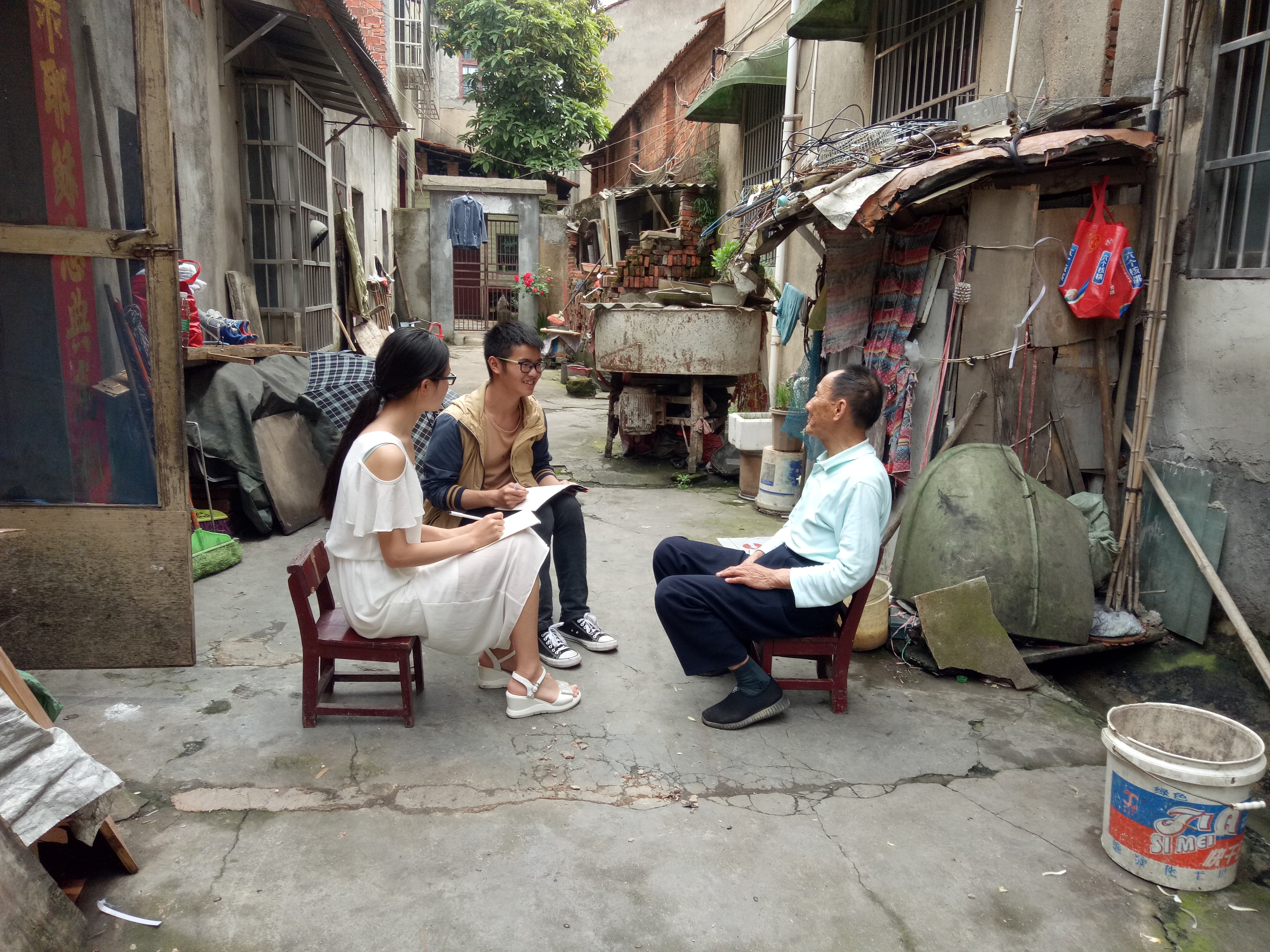早上8:00,小组成员蒋刘成和刘园在县城集合,首先商量了采访所需注意事项,并分配任务,九点准时前往被采访老人家。两位老人对黄梅方言的调查很感兴趣,对小组成员的提问也积极配合根据实际情况来谈。蒋刘成就调查问卷的核心问题与老人交流,刘园在一旁补充并做记录并拍摄采访视频。因为老人的积极配合与小组成员的充分准备,此次访查任务进行得比较顺利。在这次实践中小组成员对采访当天的过程进行记录,最终在增补了方言词汇表的基础上还获得了一份视频与一份音频材料,除此之外,两位老人还对此次调研进行了评价,他们认为这个调研是很有意义的,不仅仅是对他们来说,对黄梅方言的发展也同样具有重要的意义。老人宛焱松表示:“黄梅方言其实有很多词汇和普通话很接近,只是说的时候调子不同,所以现在的生活中有很多词都渐渐的变了,很多年轻人对一些生僻的词都不能理解,所以你们进行这样的调查很好。”两位老人对黄梅方言的发展表达美好愿景,希望在更多人的关注与帮助下黄梅方言能得到更好的保护与传承。