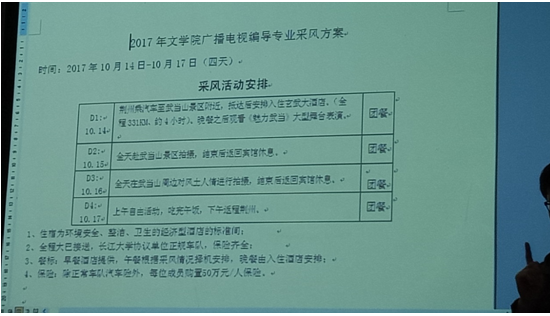 2017年10月10日下午,文学院2015级广播电视编导专业采风动员大会在主教308举行,公司教师雒仁启作为本次前往十堰武当山专业采风的带队老师召开此次动员大会。