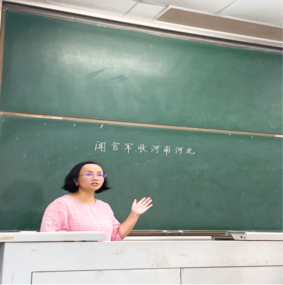 下午,荆州市实验小学的张青老师带来了主题为“小学语文教学范例演示”为主题的课程。课程伊始,张老师以《闻官军收河南河北》开篇,通过点名读,自读,齐读等方式吟诵本首诗,并了解本诗背景——安史之乱,找出诗句中体现诗人心情的字眼,从而分析出作者的思想感情。接着,张老师开启了课程的第二部分——学写日记。提出了三个观点:“1.日记就是日记;2.日记不是写作文;3.日记开始了就不能停”。首先张老师讲解了写日记的格式,然后举例说明,日记就是天天记、随手记,从而告诉学员们,要养成动笔和记录的习惯。课程的第三部分,张老师以《宇宙的另一边》一课为例,告诉学员们,关于想象课文该怎么教,怎么学。