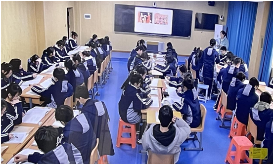 之后,参会人员共同走进宋东映老师的课堂,感受她是如何在具体的教学中实践UbD理论,以及这一理论在课堂实践中的使用效果。课程结束之后,江陵中学历史教研组长孙红财老师主持关于这一节课的课后研讨活动,他首先阐述了这一堂课存在的优势与不足,优势在于整节课思路清晰、环节紧凑、重难点突出、素材丰富、员工参与度高、课堂气氛活跃,但课程容量过大,对于部分内容的处理还需更加细化。随后,北门中学高一年级备课组长蔡永龙老师对这一堂课的利弊发表了自己的看法。