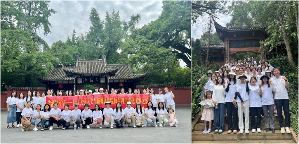 这是6月21日至24日古代文学教研室所组织的师生四川行中的一站,此外,他们还先后参观了眉山的三苏祠、成都的武侯祠和杜甫草堂。本次文化考察活动由来自中文22级和23级以及部分研究生共计44名员工共同参与,李征宇、章芳、杨伟业、袁飘、陈娟、严实等老师共同指导,师生收获颇丰。将课程所学与实地考察相结合,引导员工加深对于中国古代文学的理解,深刻体认中华优秀传统文化的魅力,这是中国古代文学教研室积极探索的课程思政新路径,本次四川文化考察活动正是新的实践。
