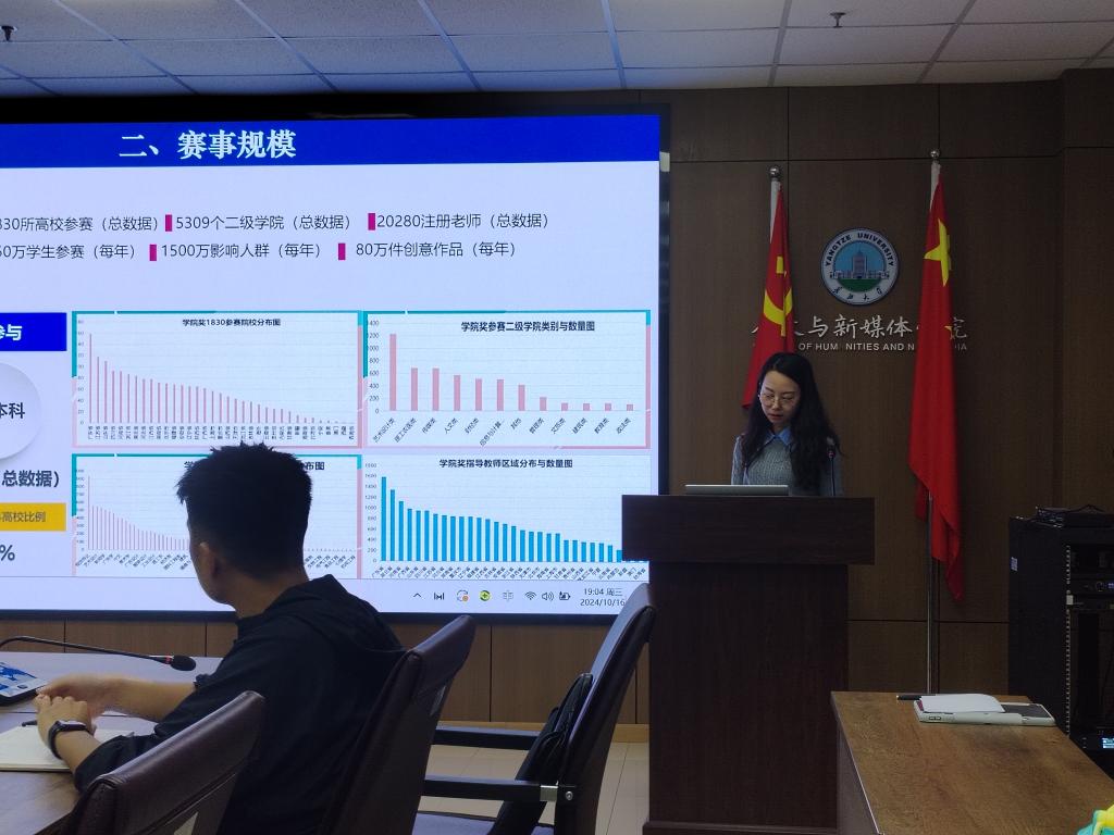 为进一步提高员工参与学科竞赛的积极性,10月16日,公司在文科大楼705会议室开展中国老员工广告艺术节学院奖宣讲会。传媒系教师王薇薇,百余名参赛员工代表参加会议。宣讲会由学院辅导员归航主持。