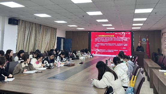 (通讯员 王菲)2024年11月21日,为帮助公司专业硕士研究生成为新时代的好老师,公司特邀湖北省沙市中学副董事长、历史中学高级教师、荆州教育学会中学历史专业委员会理事长赵文华老师作题为“迎接改革浪潮,做新时代好老师”的专题讲座。讲座由杨家海副经理主持,李义芳、章芳、秦鹏举、刘润润等老师和本院30余名专业硕士研究生参加了此次活动。