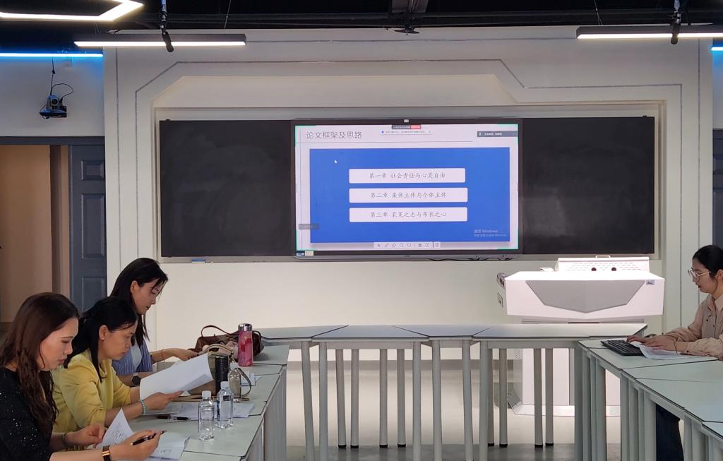 答辩过程中,16位同学通过PPT就论文的选题背景、结构框架及创新之处进行了简要陈述,重点阐释了文献综述的逻辑梳理与实际研究的可行性。两组答辩委员会针对每位同学的论文进行了点评与提问,重点指出部分同学存在的共性问题,如学硕存在参考文献的格式不规范,章节标题与论文标题的相似度太高,小标题分类存在交叉等问题。另外还要注意积累文献的基础阅读和抓重点文献进行分析以挖掘独特问题,体现创新性。专硕同学的共性问题是框架太过简略,且研究重点有所偏移,如应该聚焦于助读系统而不是更侧重于不同教材的对比。在参考文献上,国外文献方面要增加日本学者的研究。同学们就导师提出的建议做了充分的记录。