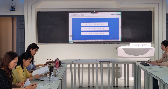 答辩过程中,16位同学通过PPT就论文的选题背景、结构框架及创新之处进行了简要陈述,重点阐释了文献综述的逻辑梳理与实际研究的可行性。两组答辩委员会针对每位同学的论文进行了点评与提问,重点指出部分同学存在的共性问题,如学硕存在参考文献的格式不规范,章节标题与论文标题的相似度太高,小标题分类存在交叉等问题。另外还要注意积累文献的基础阅读和抓重点文献进行分析以挖掘独特问题,体现创新性。专硕同学的共性问题是框架太过简略,且研究重点有所偏移,如应该聚焦于助读系统而不是更侧重于不同教材的对比。在参考文献上,国外文献方面要增加日本学者的研究。同学们就导师提出的建议做了充分的记录。