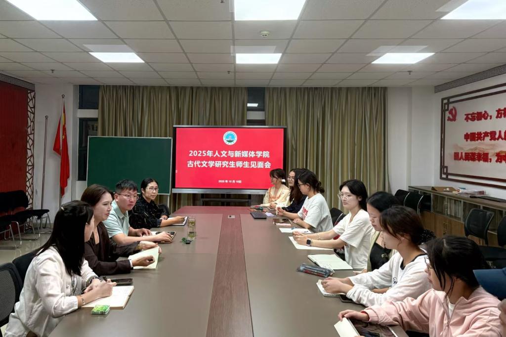 (通讯员 陈清怡 国晶晶)10月10日晚七点,古代文学教研室在文科楼701会议室举行25级研究生新生见面会,吴桂美、李征宇、杨名、杨伟业四位老师和14位25级古代文学方向的研究生参与本次会议,会议由杨伟业老师主持。