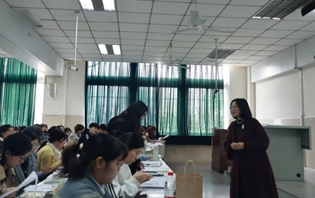 活动开始,周霜老师详细介绍了洪玉梅老师的教学成果与专业经历。洪老师深耕语文教学创新,多次在省市级精品课、教学设计评选中获奖,指导员工在全国作文大赛中屡创佳绩,曾获“师德先进个人”“优秀班主任”等荣誉称号,并受邀参与人民教育出版社全国教材培训工作,具备深厚的新教材实践与研究素养。
