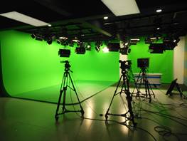 虚拟演播实验室能够满足电视摄像、布光、导播、绿幕抠像等要求。可以实现完全的多机位虚拟演播、录播功能,灯光系统完全按照虚拟演播室照明要求,保证主体人物绿幕抠图质量,主要培养员工电视节目的制作能力。实验室配备有绿箱、高清摄像机、全场景真三维虚拟演播室系统、视频特技切换台、信号监视系统、调音台及音响设备、提词器、导播通话系统、无线通话系统、调光台及灯光系统、高清非线性编辑工作站等。