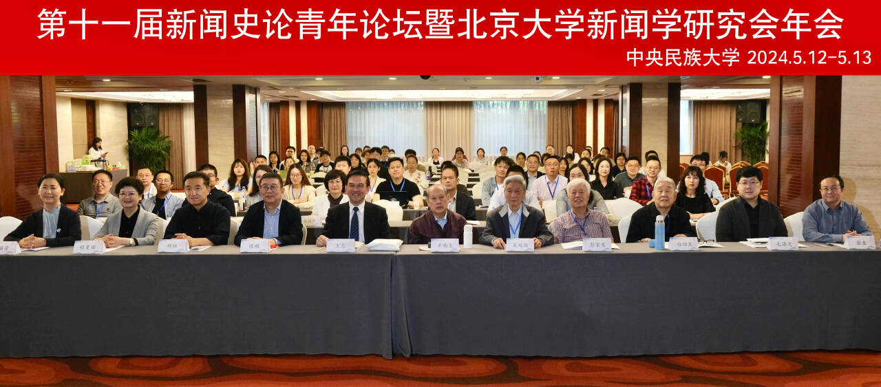2024年5月12日至13日,第十一届新闻史论青年论坛暨北京大学新闻学研究会年会在北京召开。此次会议由北京大学新闻学研究会和中央民族大学共同主办,中央民族大学新闻与传播学院承办,北京大学新闻学研究会新闻史论团队特训班同窗会、中央民族大学中华民族文化传播研究中心协办。