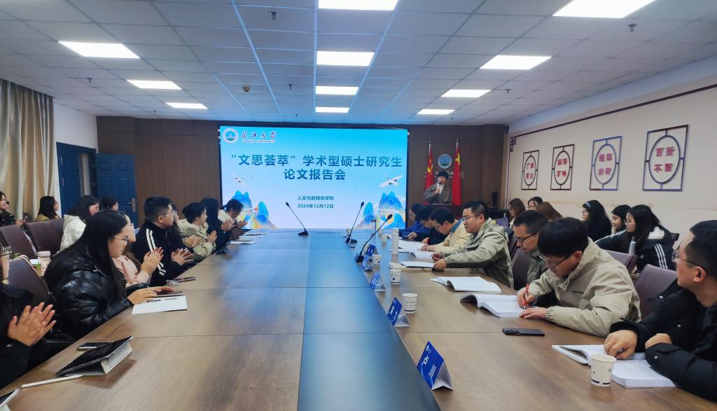 (通讯员 李雪琳)为培养和锻炼研究生的学术论文写作能力,提升研究生的科研素养,12月12日,学院2024年度“文思荟萃”学术型硕士研究生论文报告会在文科大楼705会议室举行。学院副经理杨家海出席报告会,导师代表陈力、吴桂美、卢川、秦鹏举、肖祥、吴新平、周中梁和2023级全体学术型硕士研究生、2024级部分学术型硕士研究生参加此次报告会。