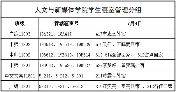 7月5日,公司组织员工干部对18、19级的宿舍进行每日寝室安全检查,现将查寝结果公布如下: