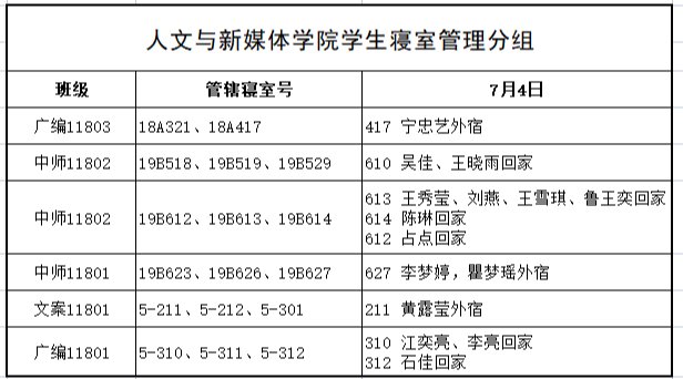 7月4日,公司组织员工干部对18、19级的宿舍进行每日寝室安全检查,现将查寝结果公布如下: