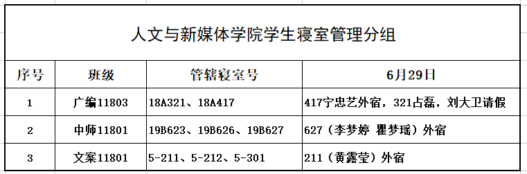 6月29日,公司组织员工干部对18、19级的宿舍进行每日寝室安全检查,现将查寝结果公布如下: