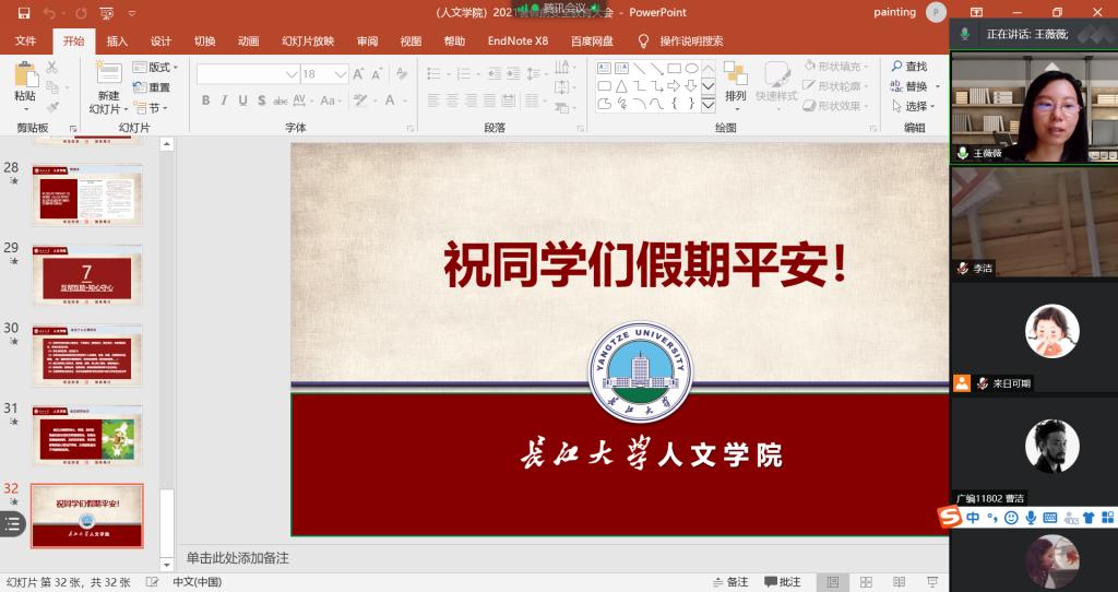 会议伊始,陈娟老师从安全管理、校园管理、健康管理三个主要方面展开论述,提醒同学们要做好防溺水、防诈骗、防火防盗等生命健康的安全管理;临近期末放假,要认真复习、做好期末诚信应考,按要求办理暑假留校程序,配合学校学院的校园管理;根据自身情况,要注重饮食选择搭配、心理状态的自我调节,做好自身的身心健康管理。