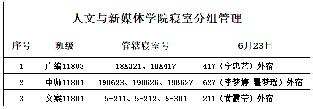 6月23日,公司组织员工干部对18、19级的宿舍进行每日寝室安全检查,现将查寝结果公布如下: