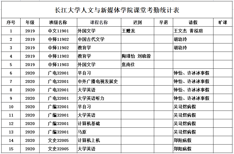 5月24日,公司组织员工干部对18、19、20级30个班的18门课程进行了59次课堂考勤,100%到课率44次,现将考勤结果公布如下: