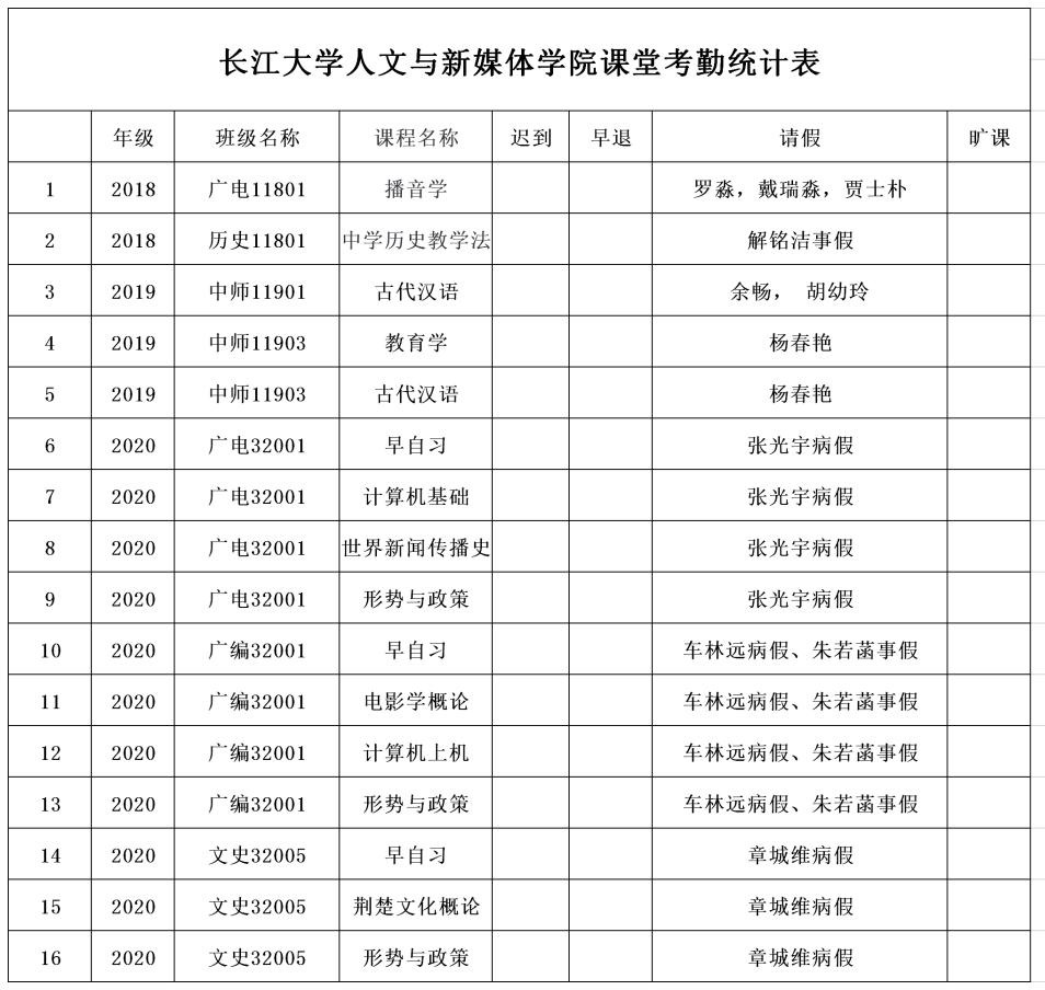 5月20日,公司组织员工干部对18、19、20级30个班的19门课程进行了55次课堂考勤,100%到课率39次,现将考勤结果公布如下: