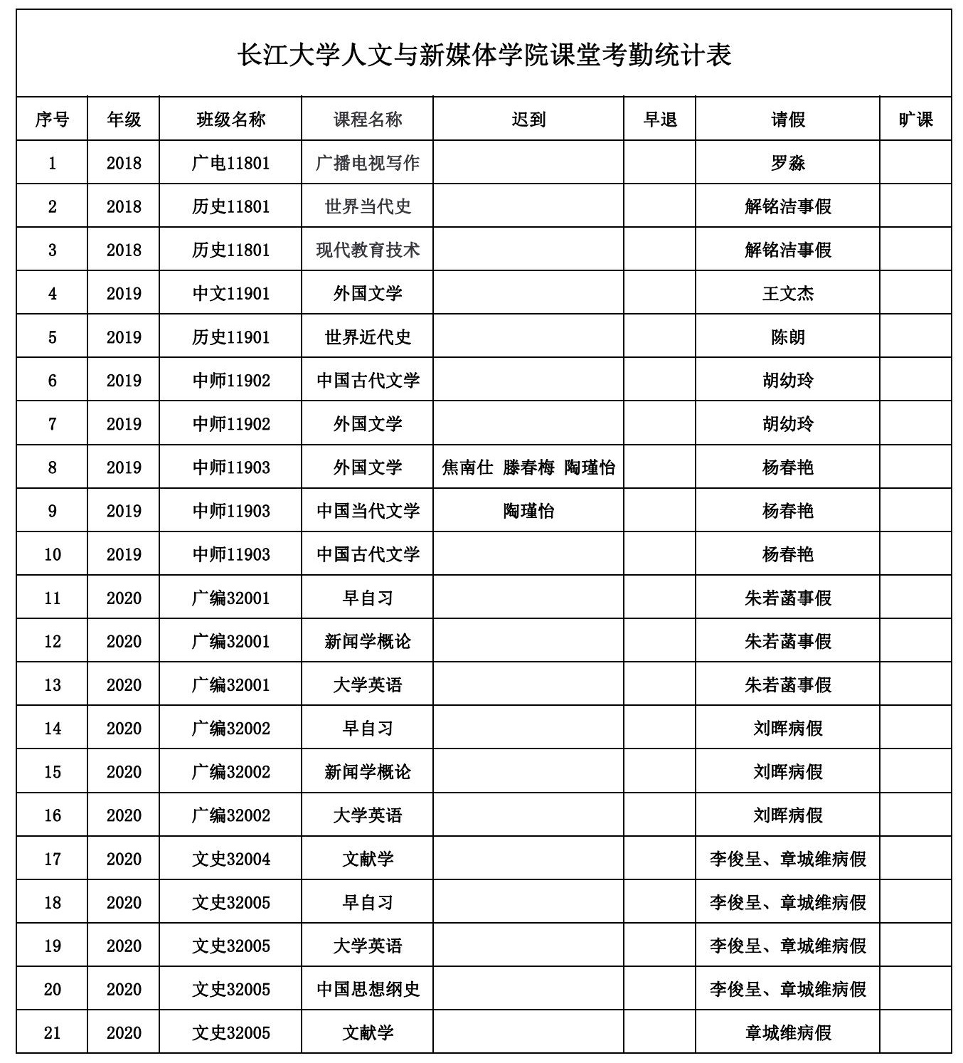 5月19日,公司组织员工干部对18、19、20级30个班的27门课程进行了61次课堂考勤,100%到课率40次,现将考勤结果公布如下: