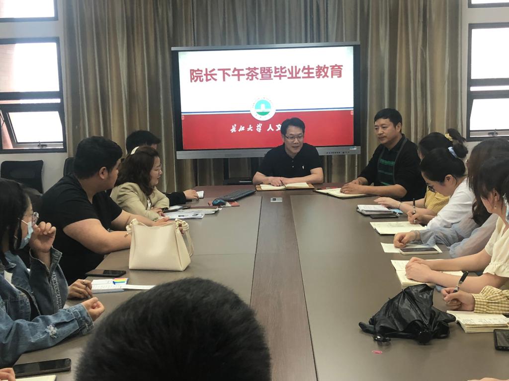 5月17日下午,bv1946伟德“经理下午茶暨毕业生教育会”在文科楼701顺利举行,经理何世龙、党委副书记胡世先、辅导员陈娟、何宁,毕业生班委及员工代表参加了本次会议。