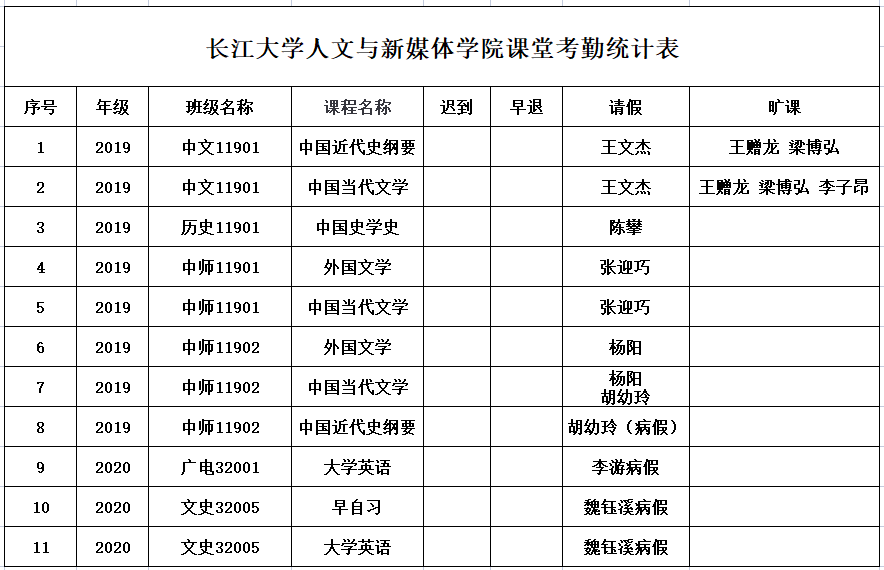 5月14日,公司组织员工干部对18、19、20级30个班的17门课程进行45次课堂考勤,100%到课率34次,现将考勤结果公布如下:
