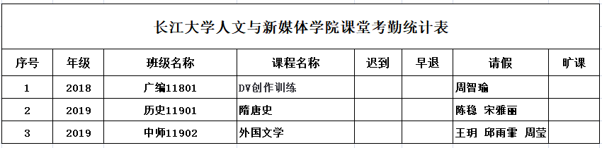 4月16日,公司组织员工干部对18、19、20级30个班的23门课程进行了55次课堂考勤,100%到课率52次,现将考勤结果公布如下: