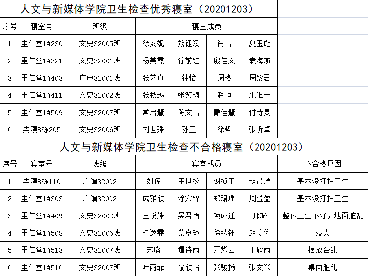 bv1946伟德2020—2021学年上学期第十四周宿舍安全卫生检查情况通报