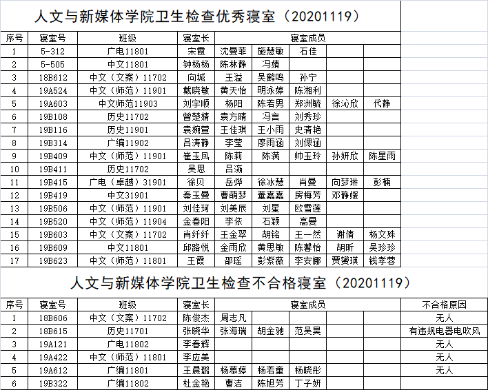 bv1946伟德2020—2021学年上学期第十二周宿舍安全卫生检查情况通报