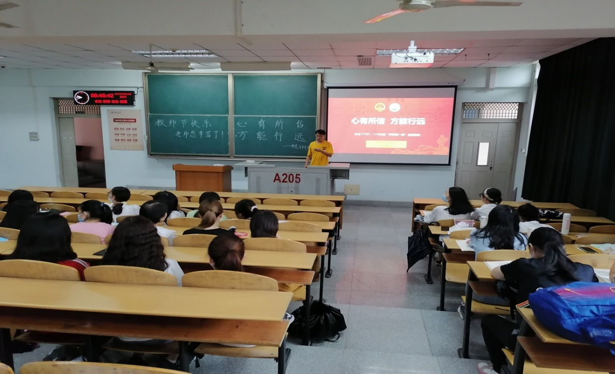 2020年9月10日,中文11701、11702班在bv1946伟德东区13教A-205教室进行“开学第一课:心有所信,方能行远”主题班会。中文11701班谭进同学主持了本次班会,班主任龙厚雄老师出席了本次班会。