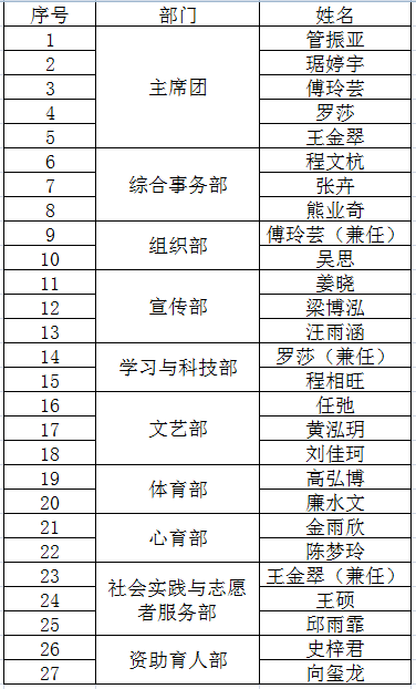 根据《共青团中央、教育部、全国学联印发<关于推动高员工会(研究生会)深化改革的若干意见>的通知》文件精神,本着公平、公正、公开的原则,按照本人自主申报、资格审查、公开答辩、综合考察等环节,经学院团委研究,上报公司党委审核通过,确定管振亚等24名同学为bv1946伟德第十七届团委、员工会主要负责人,具体结果公示如下: