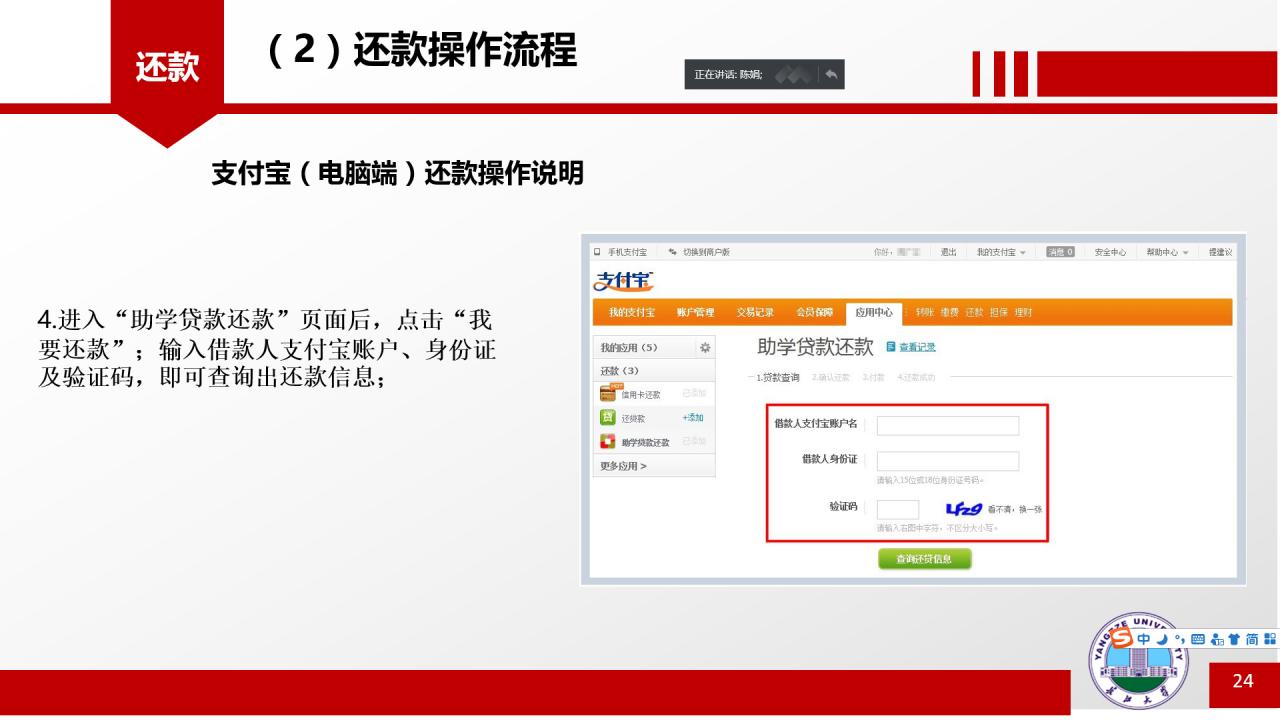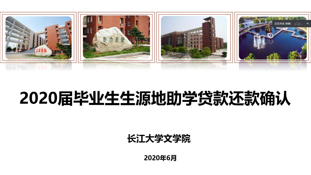 为了提高毕业生还款意识,同时加强贷款员工诚信感恩教育,6月14日,文学院2020届毕业生生源地助学贷款还款确认大会通过腾讯会议举行。陈娟老师着重讲解了还款流程、注意事项,强调了按期还款与个人诚信的利害关系,希望大家认真完成毕业确认申请,根据自己的实际情况,按时还款,诚信做人。