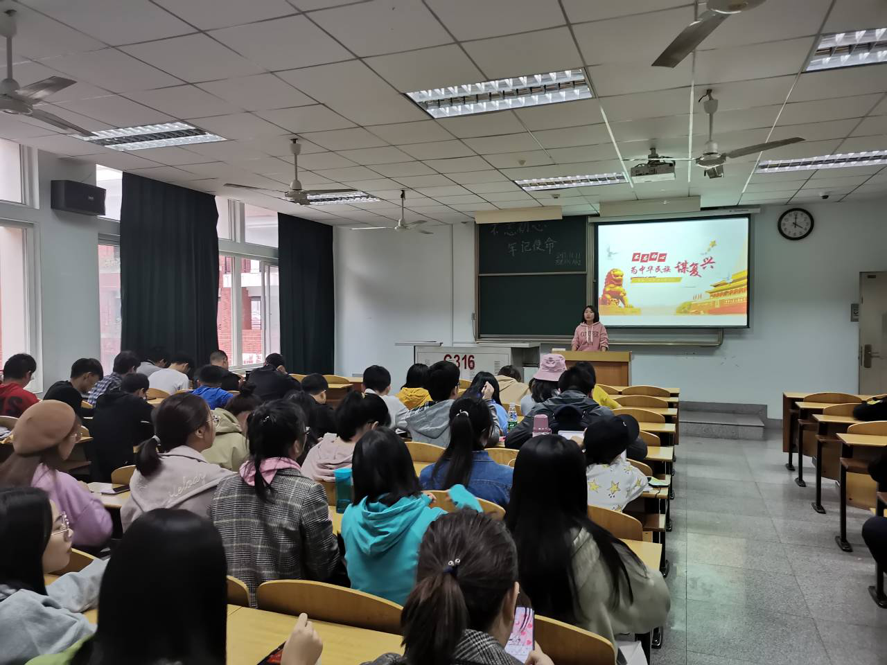 4、历史11801支部回顾了我们党的初心与使命,带领他们回顾了我们党的发展历程,从嘉兴南湖的一条游船上的几十名党员到现在一个拥有几千万党员的大党,历经了几十年的苦难与沧桑,才发展成为今天的局面,通过此次团会凝聚了班级力量,团结了班级同学,努力向上发奋进取。