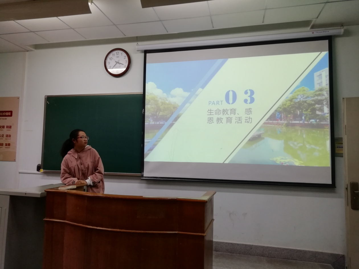 会议的第三部分为“敬畏生命,懂得感恩,防患于未然”,列举了老员工校园常见的危险活动,比如火灾,交通安全事故,溺水,防骗,禁酒预防酗酒,防性骚扰性侵害等,让同学们注意到这些真实存在对自己有影响的行为,提高危机意识,远离危险活动,做好安全措施。