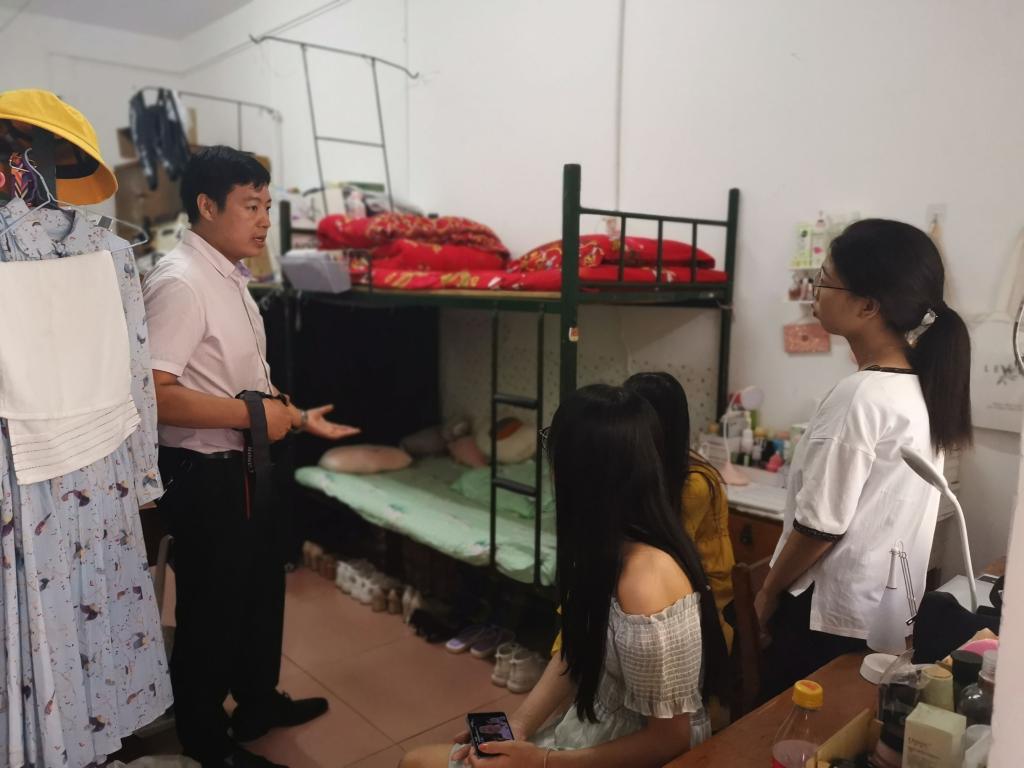 为了更好地深入员工群体,了解16、17级18级同学们寝室的情况,胡世先书记带领各年级辅导员、各班班主任于9月4日来到南苑员工宿舍开展了查寝工作。