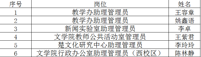 经个人申报、用人办公室审核,最终确定文学院2019年春季勤工俭学员工人选,现将勤工助学员工名单公示如下: