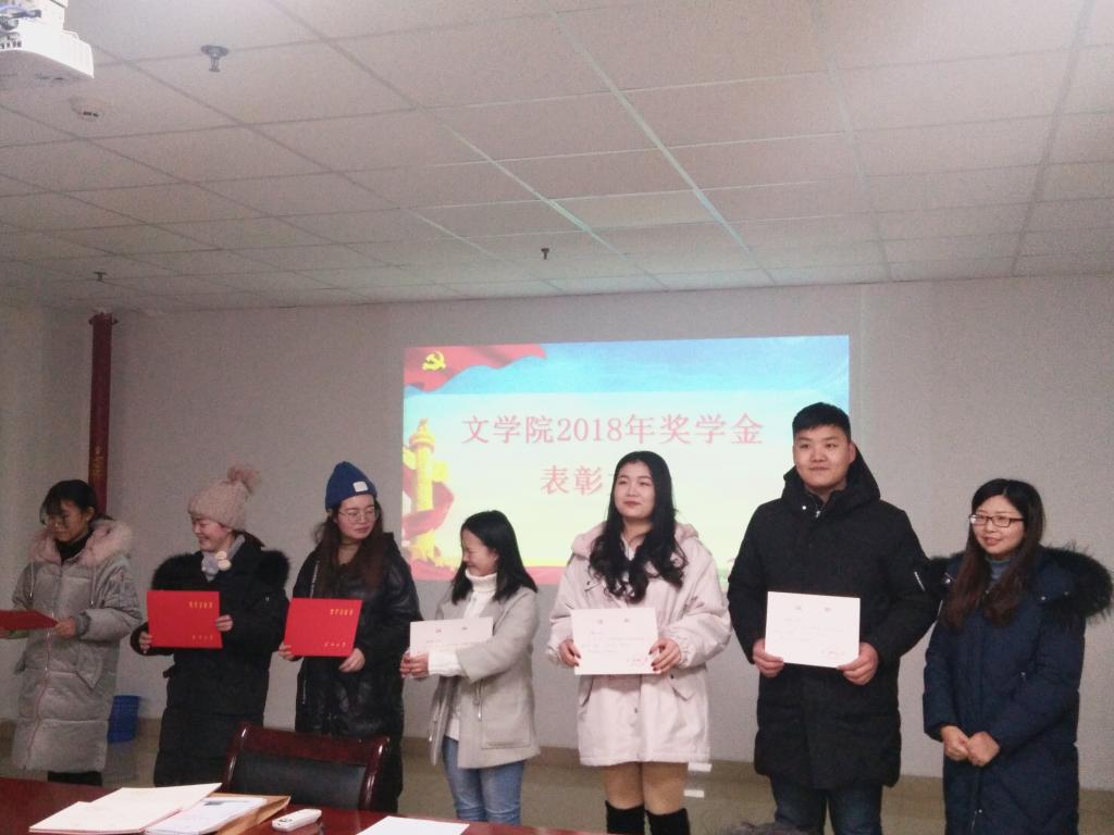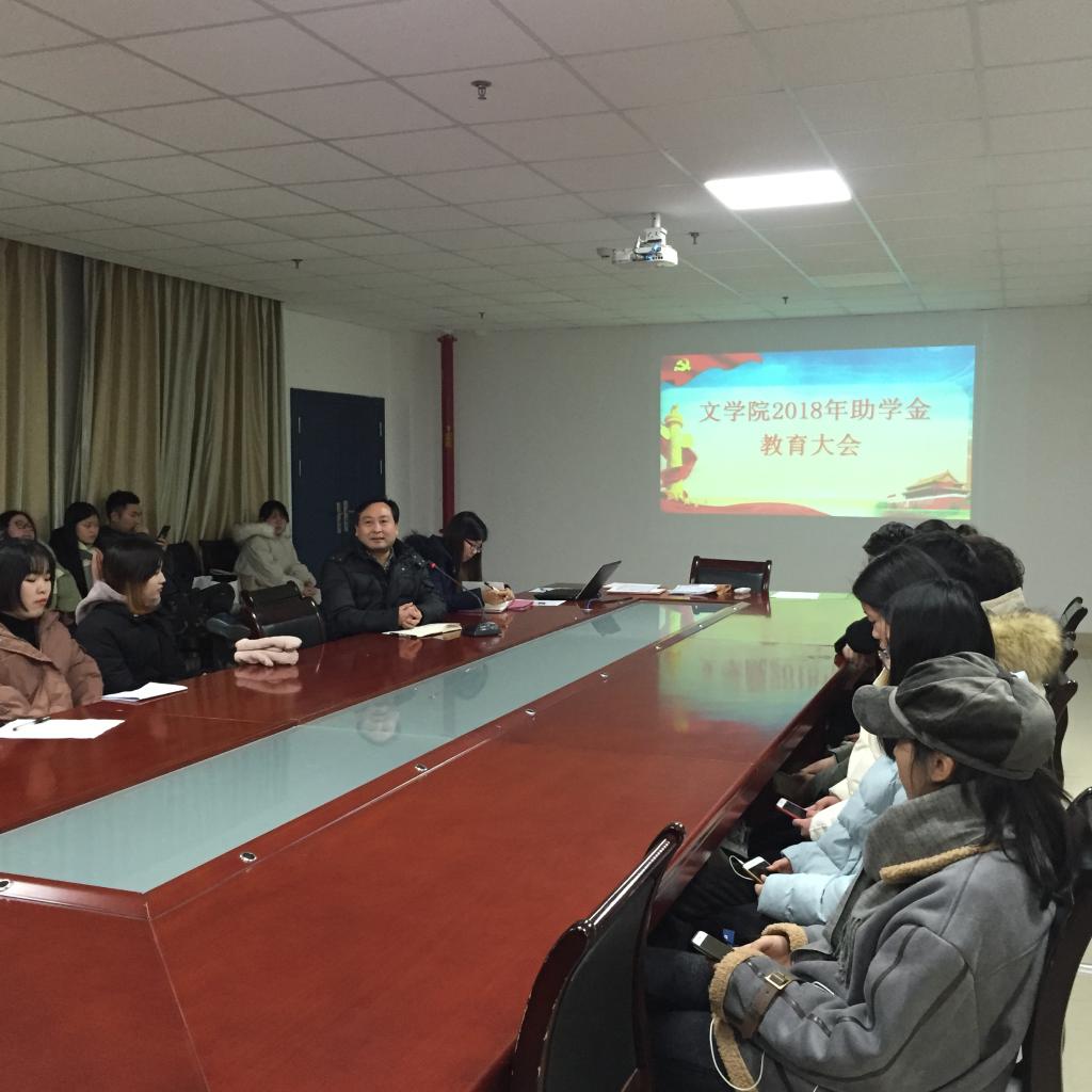 为进一步贯彻国家资助政策、促进公司资助育人工作,1月10日晚上,公司于文科大楼705会议召开文学院2018年度奖学金表彰大会和助学金教育大会,文公司党委书记杨鑫,学工办主任严实,辅导员李博、李永琪参加了大会。