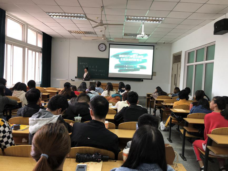 2、广电11601班主持人对于习近平总书记在2018年全国教育大会上关于坚持中国特色社会主义教育发展道路的报告进行了宣讲,呼吁号召同学们认真学习最新思想。