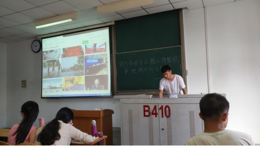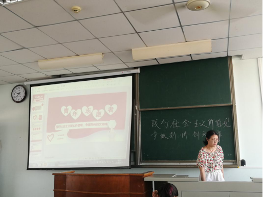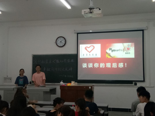 图一.团会主要以青年志愿者协会相关知识为切入点展开。活动伊始,主持人带领大家了解了青年志愿者协会的相关知识,从什么是志愿者,青年志愿者协会会徽的含义,以及志愿者精神等方面展开。随后,全班同学一起观看学习了《志愿者在行动》的相关视频,最后,大家一起学习了荆州创建全国文明城市50题,加强了大家对荆州发展的了解。