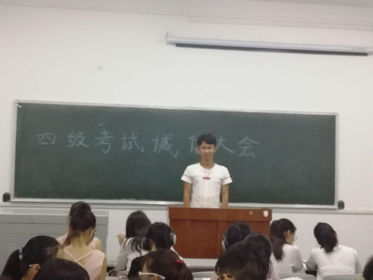 此次大会紧紧围绕着“诚信”这一主题,旨在在即将到来的四级考试中,遵守考场纪律,考出真实水平。同时提醒同学们四级考试的相关注意事项,以及在本周进行的四级口语考试的相关注意事项。