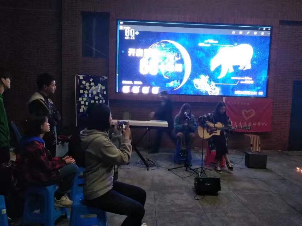 为响应世界自然基金会的号召,文学院青年志愿者服务队于3月24日晚举办了“地球一小时”活动。文学院青年志愿者服务队的队员们别出心裁,认真设计活动内容,于文科大楼前摆放蜡烛,并设计了吉他弹唱和趣味游戏等环节,号召同学们走出寝室,熄灯一小时,为全球节能做出贡献。这一活动受众参与度较高,以实际行动证明了我们对应对气候变化的支持,为世界环境献出一份力量。