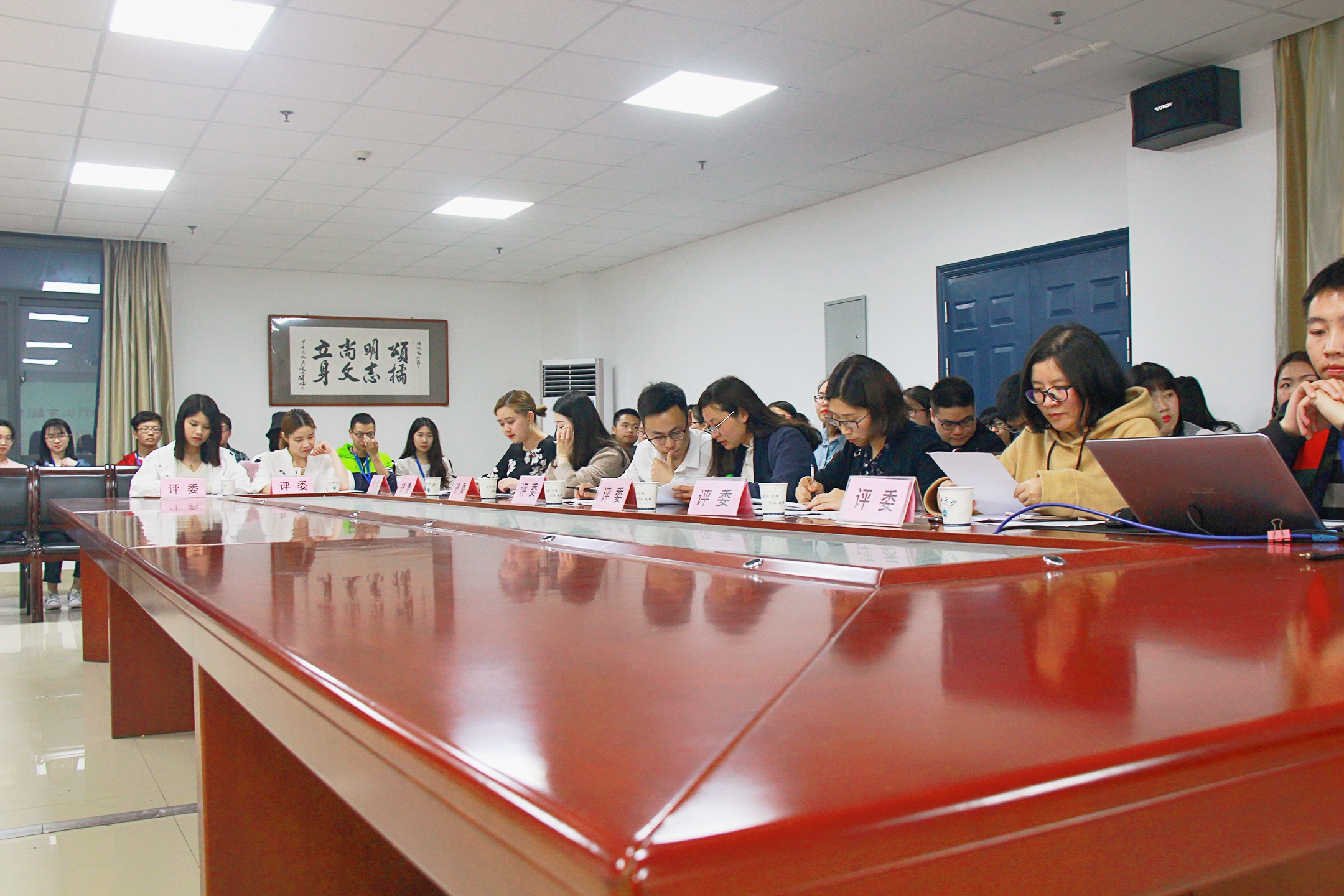本次复赛以面试形式考察选手的文学素养和知识技能储备能力。第一个环节是“自我介绍”,38名选手两两组合,各自所取的组合名与本次大赛国学经典相呼应,各具特色。第二环节是“心有灵犀”,主要考察的是选手的临场反应能力和舞台表现力。选手一个比划一个根据比划内容猜出对应诗词。其中来自广编11701班的李瑾雯和李一品同学率先登场,她们沉着冷静、不急不躁,其超高的默契和良好的临场反应获得老师的一致好评。