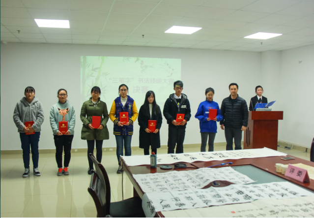 (通讯员 张晓晴)11月23日下午4时,由bv1946伟德文学院及bv1946伟德书法文化研究中心主办、文学院团委员工会承办的第六届“三笔字”书法技能大赛决赛在东校区文科大楼0705会议室顺利举行。担任此次比赛的嘉宾及评委是文公司党委副书记周书航老师,中国书法家协会会员、荆州市书法家协会副主席朱道卫老师,文学院辅导员陈娟老师。