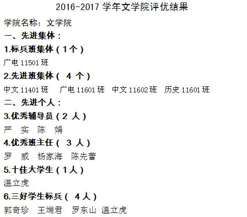 关于评选2016-2017学年员工工作先进集体、先进个人和优秀员工结果的公示
