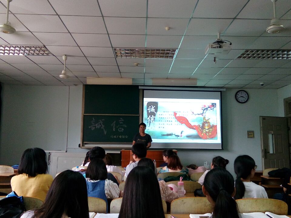 二年级以召开主题班会的方式展开。9个专业班级在各班班委的精心策划下,先后围绕诚信主题召开班会,各班通过演讲、做游戏、播放PPT等不同的形式,积极引导同学们做一个有诚信、敢担当的人。部分班级在班会中引入了关于诚信的经典案例,组织同学们分析讨论,深化了活动意义。