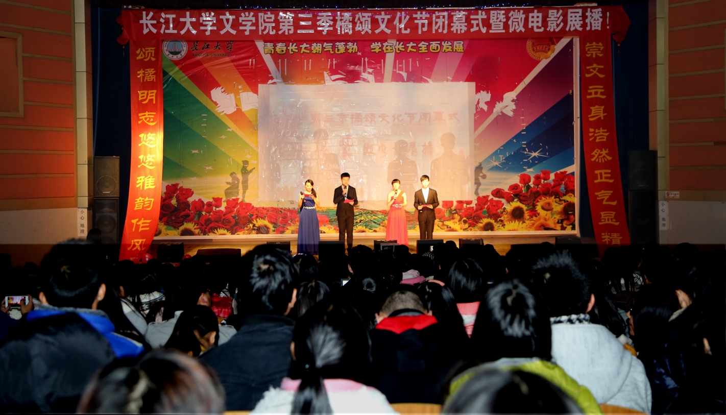 (员工记者 黄红霞 通讯员 刘倩)“橘颂明志,尚文立身。”12月11日晚7时许,第三季橘颂文化节闭幕式暨微电影展播在南苑小礼堂隆重举行。文学院经理许连军、党总支书记邹火明、党总支副书记毛洪文、团总支书记胡世先等文学院老师出席了本次展演。