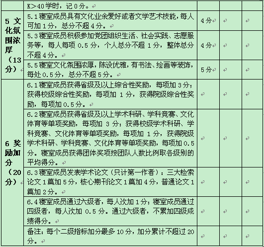 4.期末寝室文明评比排在后五名的寝室,取消寝室人员评优、评先、助学金等资格。